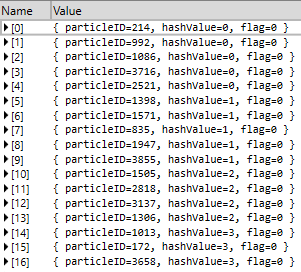 출력 : 플래그 설정된 정렬된 ParticleHash